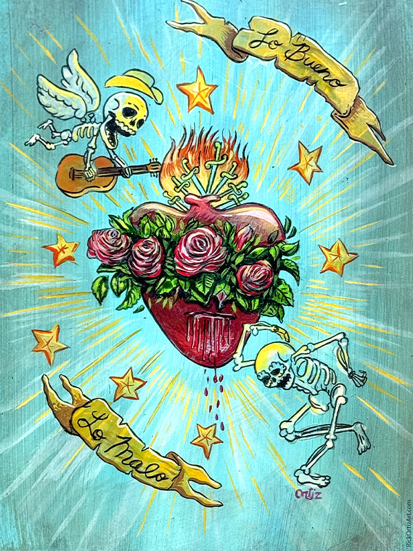 The 8.5 x 11 Bueno y Malo prints are produced with archival ink on glossy paper and are perfect for those of you who prefer to frame your art.